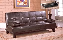 Futon sofa: 70" x 33" x 31", Sofa bed: 70" x 42" x 14", Available colors Black, Brown, Material Bycast leather, Finished Wood finished legs, Price included 1 Futon sofa bed