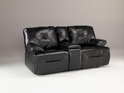Ashley Double Reclining Loveseat w/ Console & Power. DuraBlend/Match upholstery Frames have been tested to GSA government standards Corners are glued, blocked and stapled Stripes and patterns are match cut All fabrics are pre-approved for wear ability and durability against AHMA standards