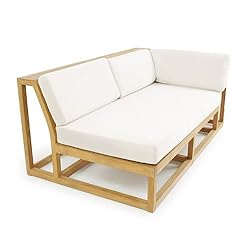 This is the Right Side Teak Sofa Sectional of our new Maya Collection. Combine this section with the corner piece teak sectional and the left side teak sofa sectional for a complete set. Plush deep seating cushions sit atop a minimal, but extremely sturdy frame in solid teak wood to give the impression of "floating above the ground" or lightness in the furniture. This low profile teak furniture with wide (6") wrap around arm-rests provide functionality by allowing ample space for drinks. The wrap around arm rests are tough and rigid enough for even sitting on the back rest.