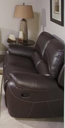 Dark Chocolate Bonded Leather. Dual Reclining Loveseat: 67" W x 39" D x 39" H. Construction. Solid hardwood frame with select marine grade plywood components. Corner blocks utilized at all critical stress points. Heavy duty sinuous springs. Pirelli webbing. Fully padded outside arms and back. Comfort. Individual pocketed coil springs in seat cushions. 1.8 - 2.2 density premium foam cores wrapped in Dacron to achieve optimal seating comfort. Dacron filled baffle bags in backs.