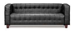 Made from Italian leather and cherry-stained wood. Comes in color choice of white or black. Button detail accentuates grid pattern. Versatile modern style perfect for home or office. Measures 78L x 30W x 28H inches.Source: Button Leather Sofa Color - Black Online Store