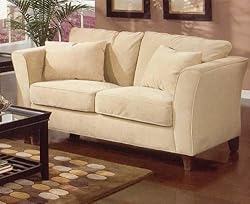- With its cozy pillow back and easy care fabric, this item is where contemporary design meets comfortable living.