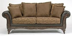 Traditional style. Base upholstered in san marino chocolate poly cotton blend. Back pillows in silas raisin with kent fringe. Contrasting pillows in sienna chocolate. 53% rayon, 33% polyester and 14% cotton. Leggett and platt sinuous springs. Made from hardwood, softwood and engineered wood products. Made in USA. Seat width: 66 in.. Seat depth: 22 in.. Seat height: 22 in.. Overall: 93 in. L x 38 in. W x 40 in. H (165 lbs.) The Serta Ronalynn collection provides a testament to who you are and everything youve worked for. Its rich, traditional styling exudes classic elegance and will provide an unsurpassed level of comfort and styling to any living room area. Whether youre spending quiet time with family or entertaining guests, the Serta Ronalynn collections elegant royal style and earth-tone colors will extend an open invitation for everyone to relax between its plush, rolled arms and settle back onto its soft, Kent Fringe Siena Chocolate contrasting throwback pillows.